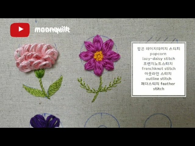 프랑스자수는 다양한 스티치로 구성되며, 아래는 가장 많이 쓰이는 기초 스티치들이에요.