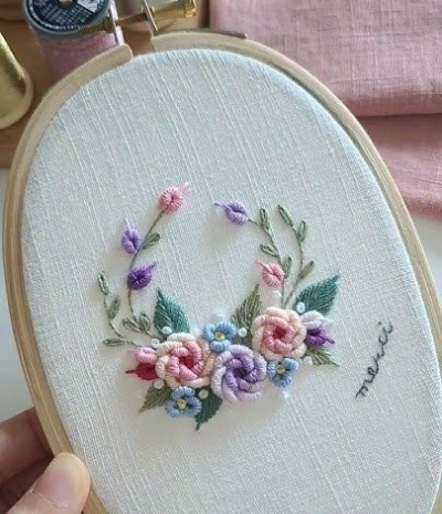 프랑스자수는 다양한 스티치(자수 기법)를 활용해 꽃, 동물, 글자 등을 표현하는 자수 방식입니다. 일반적인 십자수보다 자유롭고 유기적인 형태를 만들 수 있어 예술적인 느낌이 강해요.
